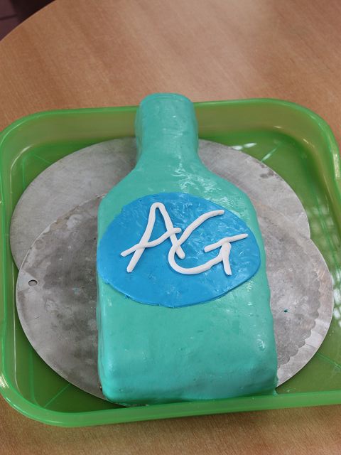 Es war irgendwie schade, die künstlerisch toll verzierte Gelddose zu knacken - aber irgendwie mußte deren Inhalt ans Tageslicht befördert werden. So kamen nach und nach € 800,-- zusammen, die dem FUoKK eV zur Stabilisierung des Sportprojekts "SPORT und REHABILITATION für onkologisch erkrankte Kinder und Jugendliche" zur Verfügung gestellt wurden. Jetzt konnte Dirk RADEMACHER das Mitarbeiterfest weiter genießen und gönnte sich gleich eine ZUCKERWATTE -was der Berichterstatter natürlich gleich im Bild festhielt- . Die Verbundenheit zu ihrem Unternehmen brachte eine Mitarbeiterin mit einem wunderschönen und wohlschmeckenden Kuchen in Form einer grünen Ardagh- Flasche auf einen einfachen Nenner.