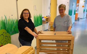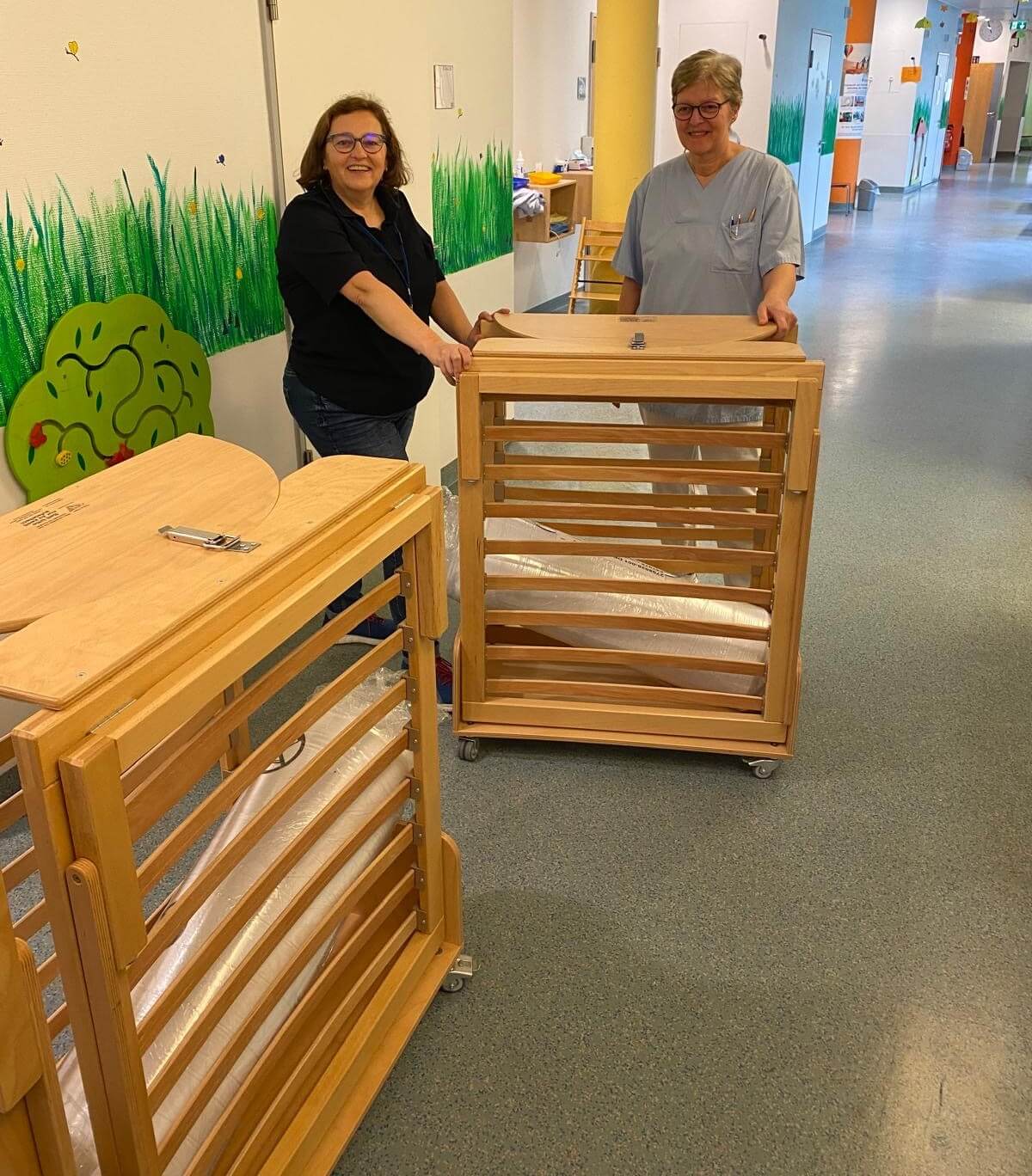 Admira Knoll (links) und Stationsleiterin Christiane Pantle haben die Betten entgegengenommen. Foto: Peter Knoll